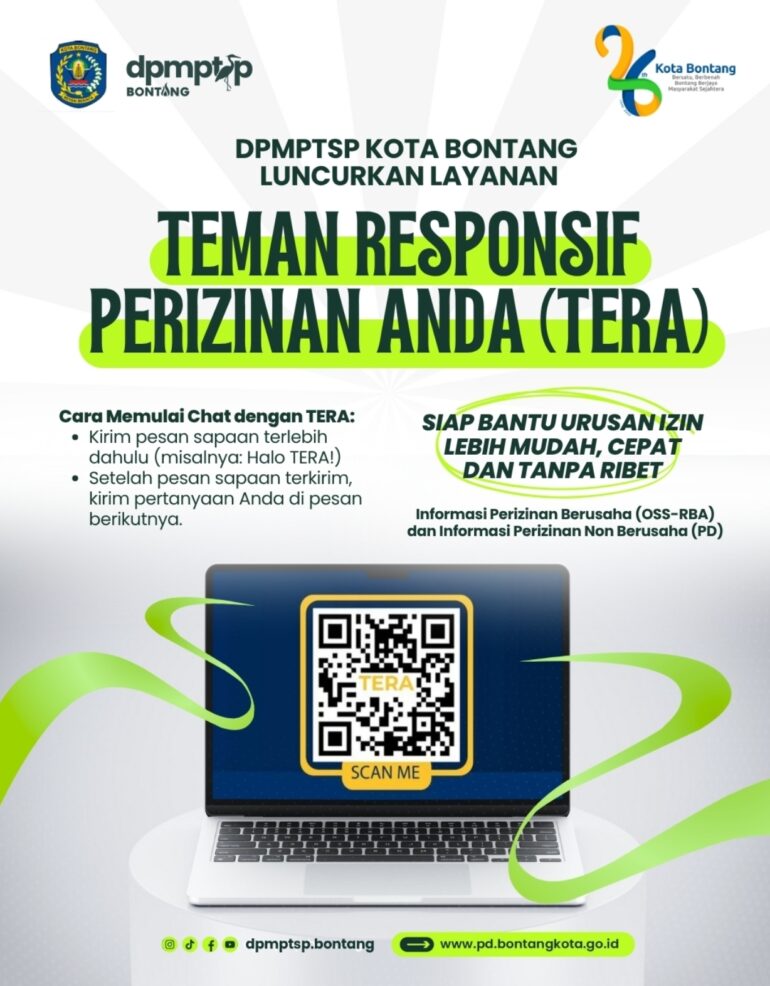Melalui TERA, warga dapat memperoleh jawaban otomatis mengenai berbagai jenis perizinan — mulai dari persyaratan, durasi penyelesaian, hingga kelengkapan dokumen. Cukup memindai barcode untuk terhubung ke WhatsApp resmi TERA, kemudian mengetik pertanyaan sesuai kebutuhan.