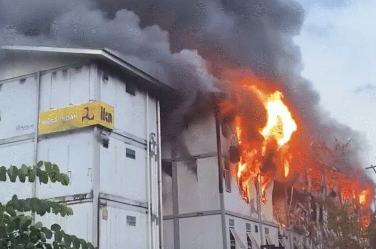 Api membakar Tower 14 Hunian Pekerja Konstruksi IKN.