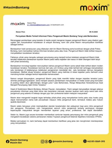 Maxim Bontang Tegaskan Tak Terlibat Kecelakaan, Sebut Informasi di Medsos HoaksDaerah·10 Oktober 2025 | 18:26